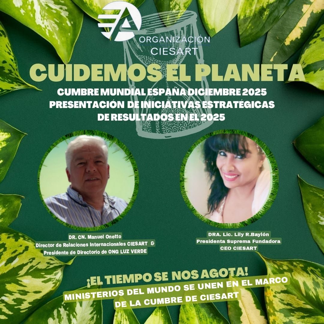 La Presidenta Suprema de la Organización CIESART la Dra. Lic. Lily Baylón, lidera esta trascendental iniciativa junto a diversos ministerios de diferentes países del mundo, con quienes se vienen coordinando acciones conjuntas de alto impacto para enfrentar los efectos del cambio climático, fomentar políticas de desarrollo sostenible y promover la educación ambiental en todos los niveles.