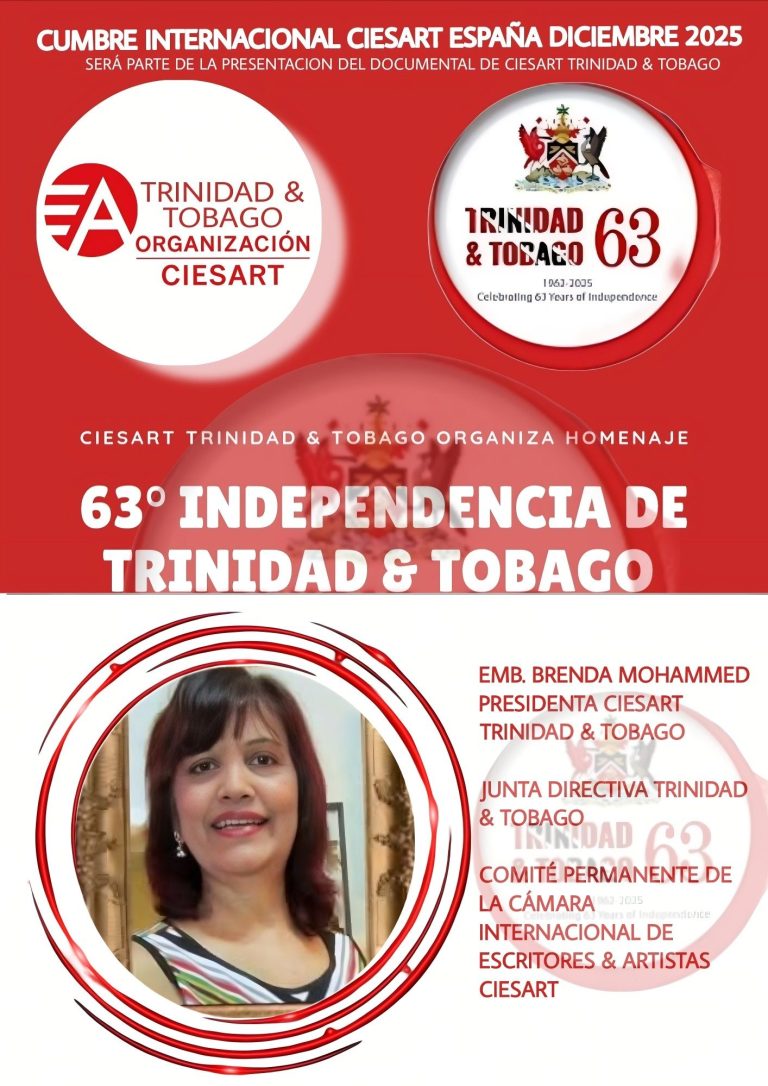 En el marco de la Cumbre Mundial CIESART España, Diciembre 2025, donde se reunirán los 5 continentes, se rendirá mención especial a la Independencia de Trinidad y Tobago dentro de una de las proyecciones documentales donde los Miembros Oficiales activos Internacionales de CIESART, se exhibirán sus obras en prosa o verso,serán seleccionadas las que resulten más resaltanres, contará con certificación oficial.