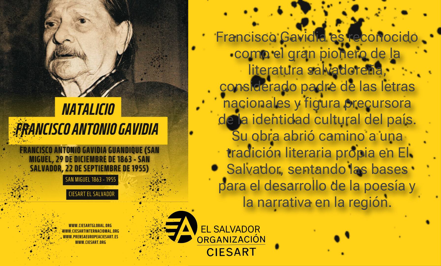 CIESART INTERNACIONAL celebró el 10 de mayo de 2025 el Homenaje en el Mes del Natalicio del Padre del Psicoanálisis, Sigmund Freud. Escritores, gestores y artistas de los cinco continentes enviaron obras en prosa o verso dedicadas al legado de Freud. Se certificó exclusivamente a miembros oficiales de CIESART que participaron dentro del plazo, destacando la importancia del inconsciente y el autoconocimiento en la historia del pensamiento.