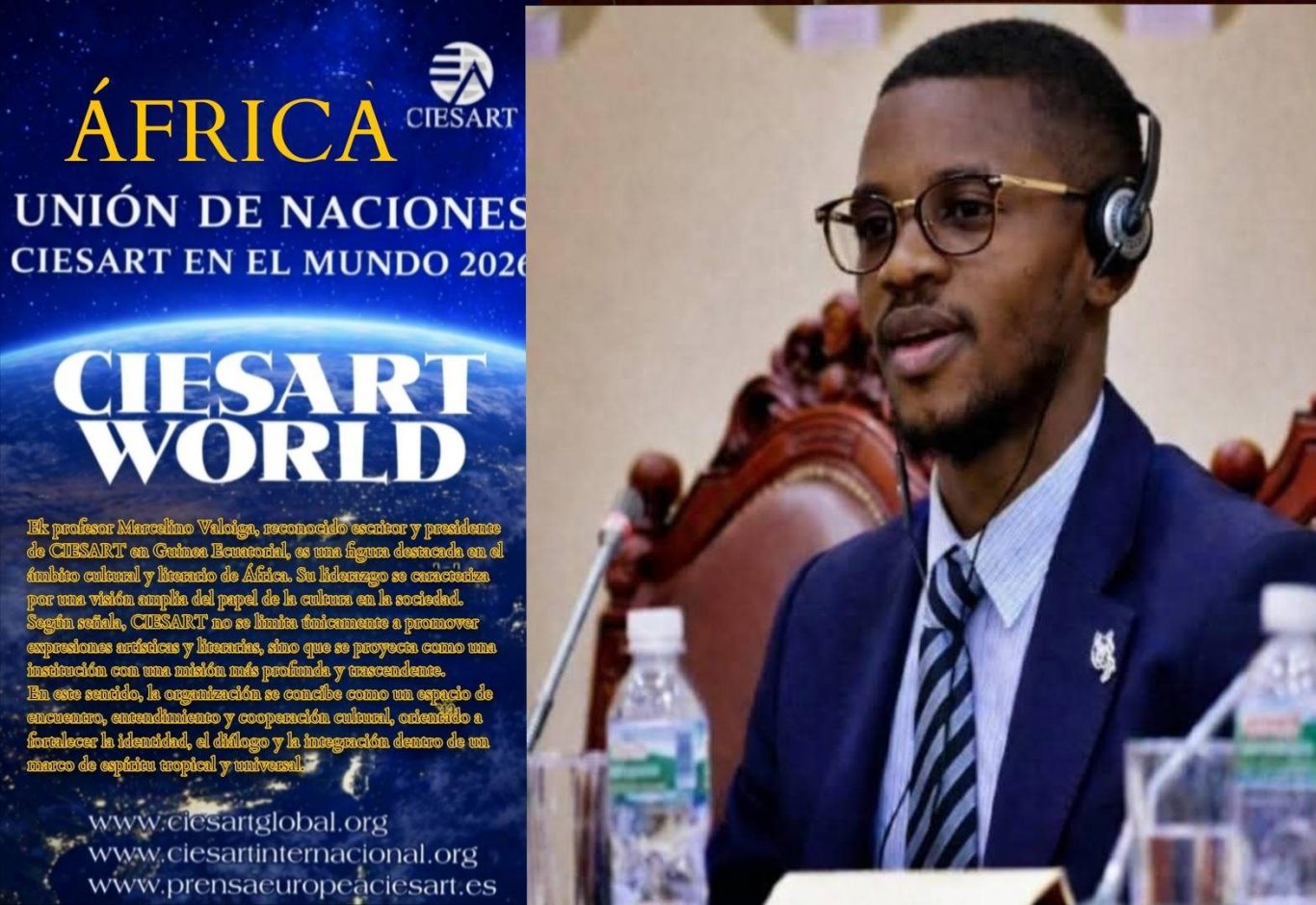 En África, Marcelino Valoiga, reconocido escritor y Presidente de CIESART en Guinea Ecuatorial, constituye una figura destacada en el ámbito cultural y literario del continente. Su liderazgo se distingue por una visión amplia y humanística del papel de la cultura en la sociedad. Bajo su dirección, CIESART no se limita a promover expresiones artísticas y literarias, sino que se proyecta como una institución con una misión profunda orientada al fortalecimiento de la identidad cultural, el diálogo intercultural y la integración social dentro de un marco de espíritu universal.