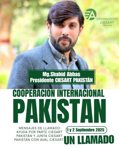 Asia del Sur CIESART Pakistán; si Presidente Prof. Shahid Abbas en Pakistán sus Directivos de CIESART Pakistán llevaron a cabo una significativa conferencia cultural en la que se abordaron problemáticas sociales y culturales del país, promoviendo el diálogo, la convivencia pacífica y la difusión de mensajes de unidad y esperanza.